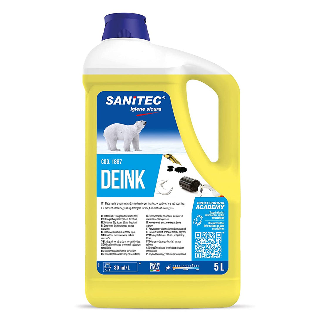 Detersolvente sgrassatore attivo per inchiostro da 5 lt. art. DEINK 1887 art. Sanitec