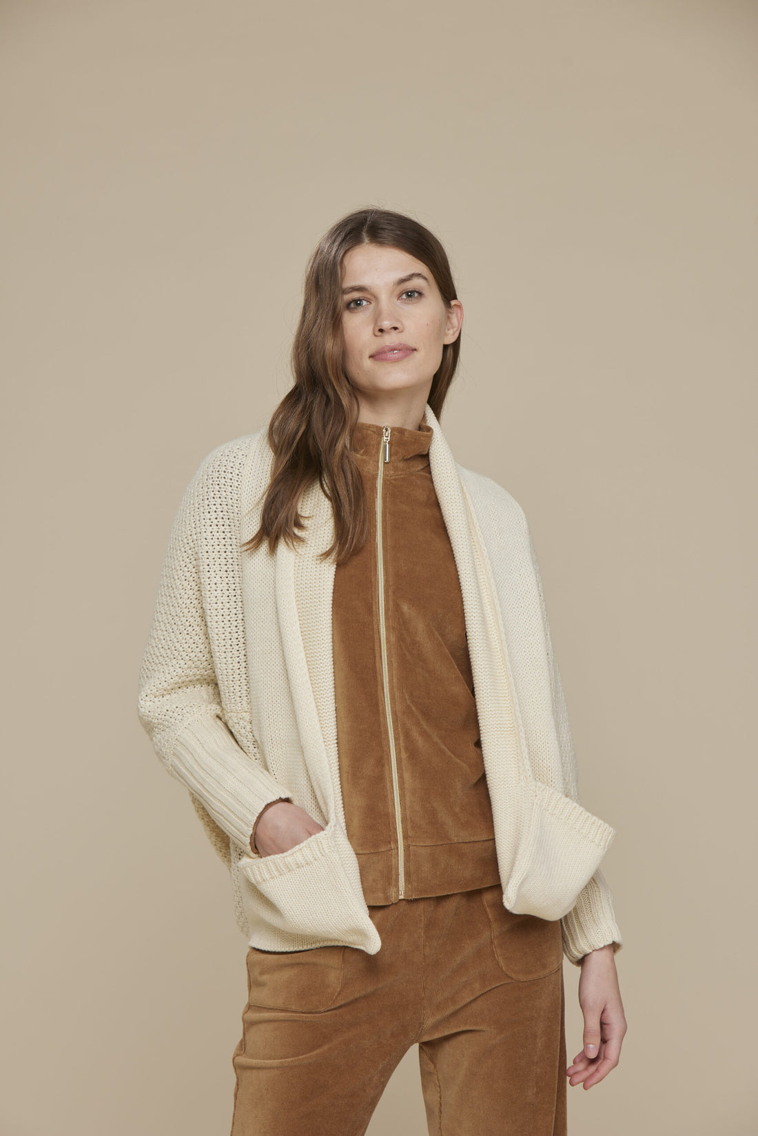 Mantella donna manica lunga con tasche sul davanti col. panna. Taglia unica.