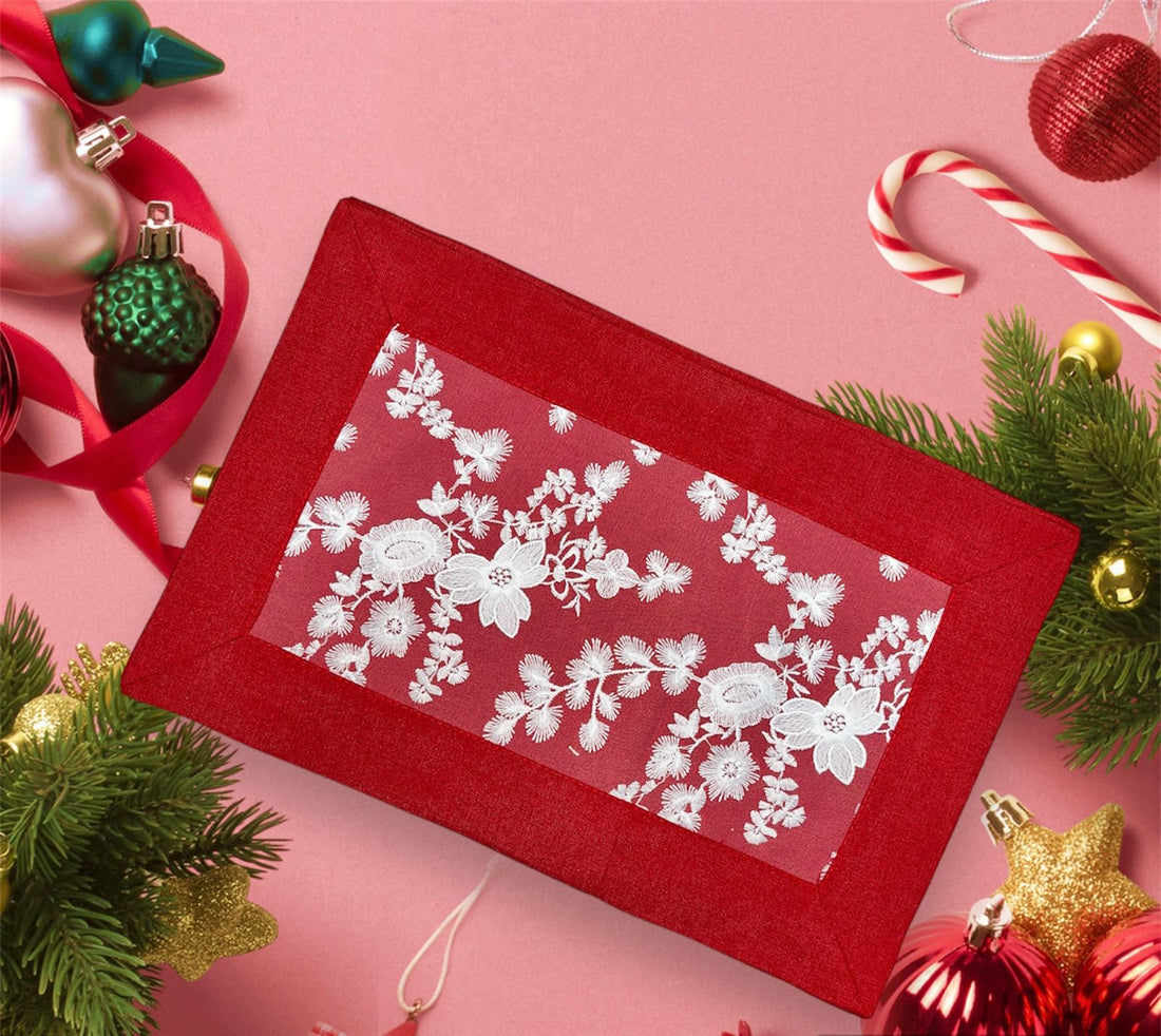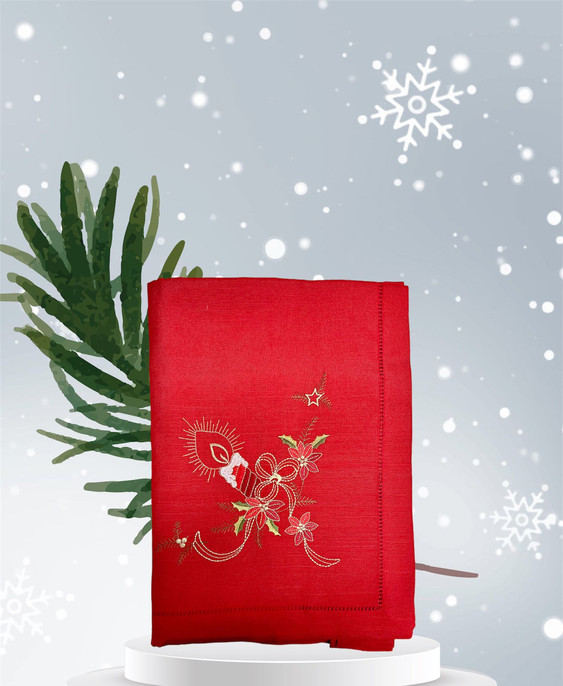 Tovaglia natalizia in lino con tovaglioli art. Stella