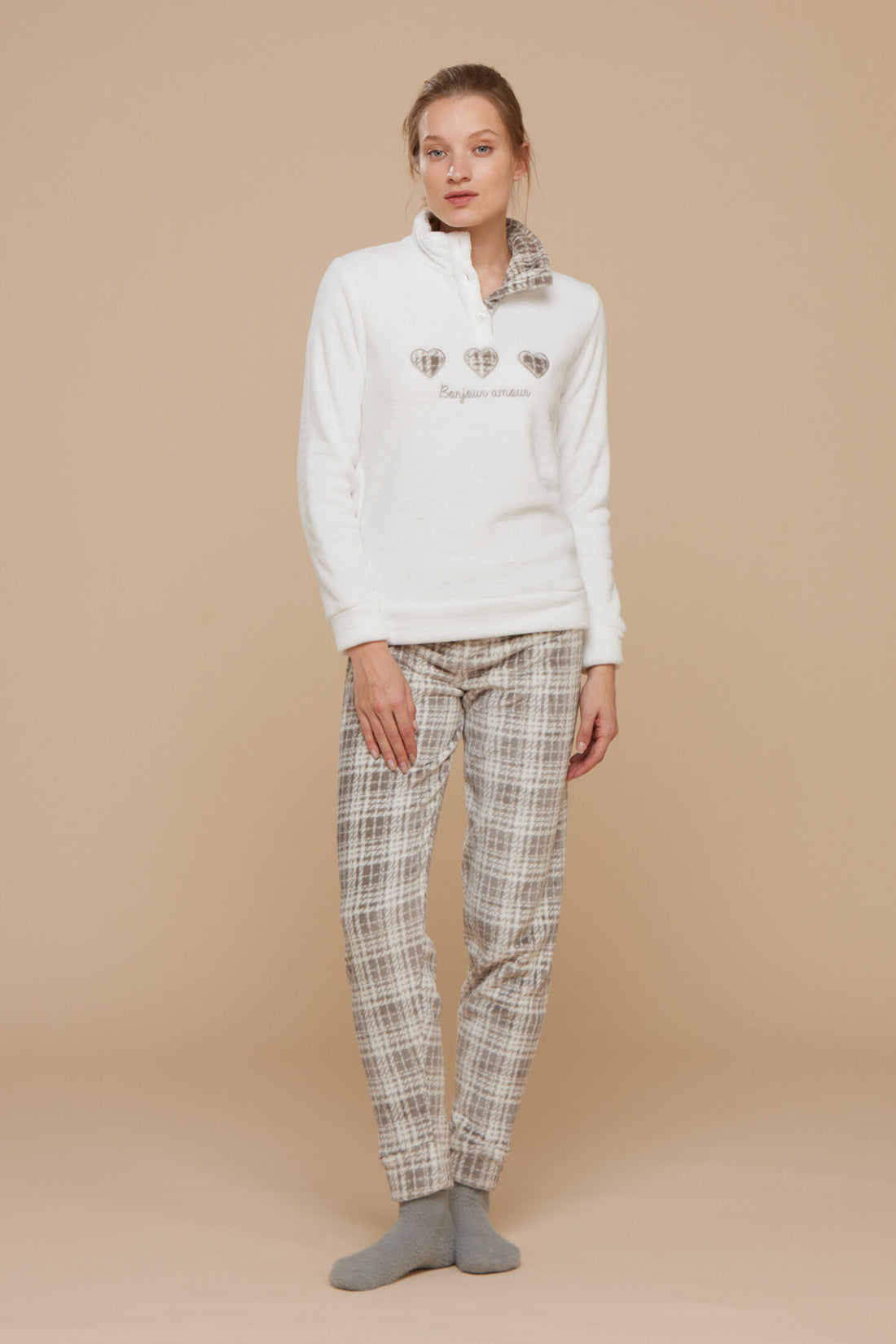 Pigiama donna in caldo cotone con stampa pied de poule. Top a due bottoni con...