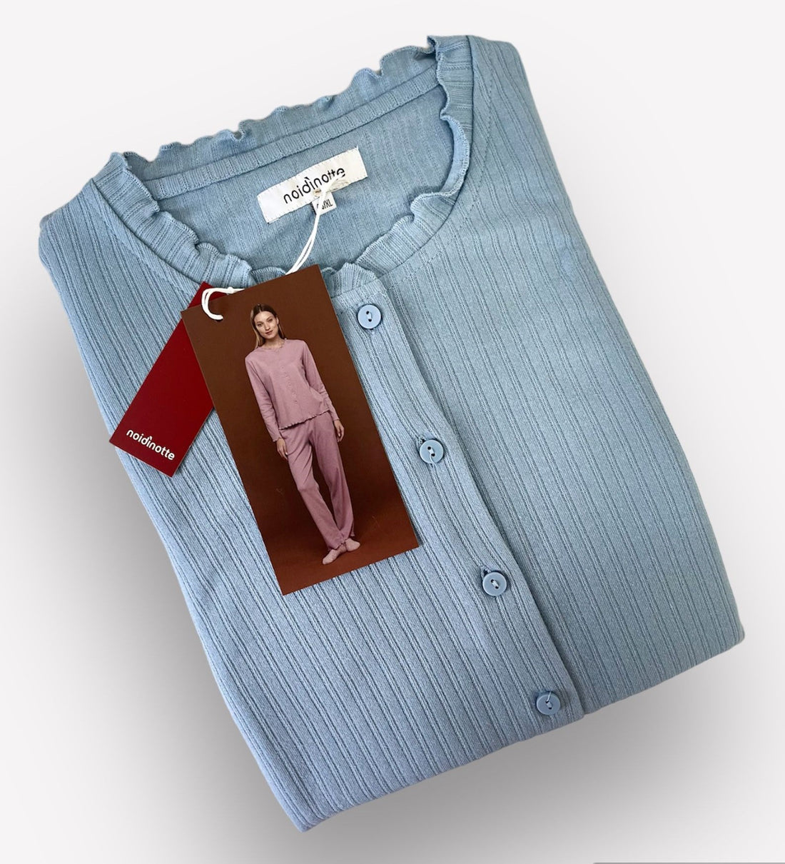 Pigiama donna costina camilla top aperto sul davanti con abbottonatura centrale e pantalone lungo senza...