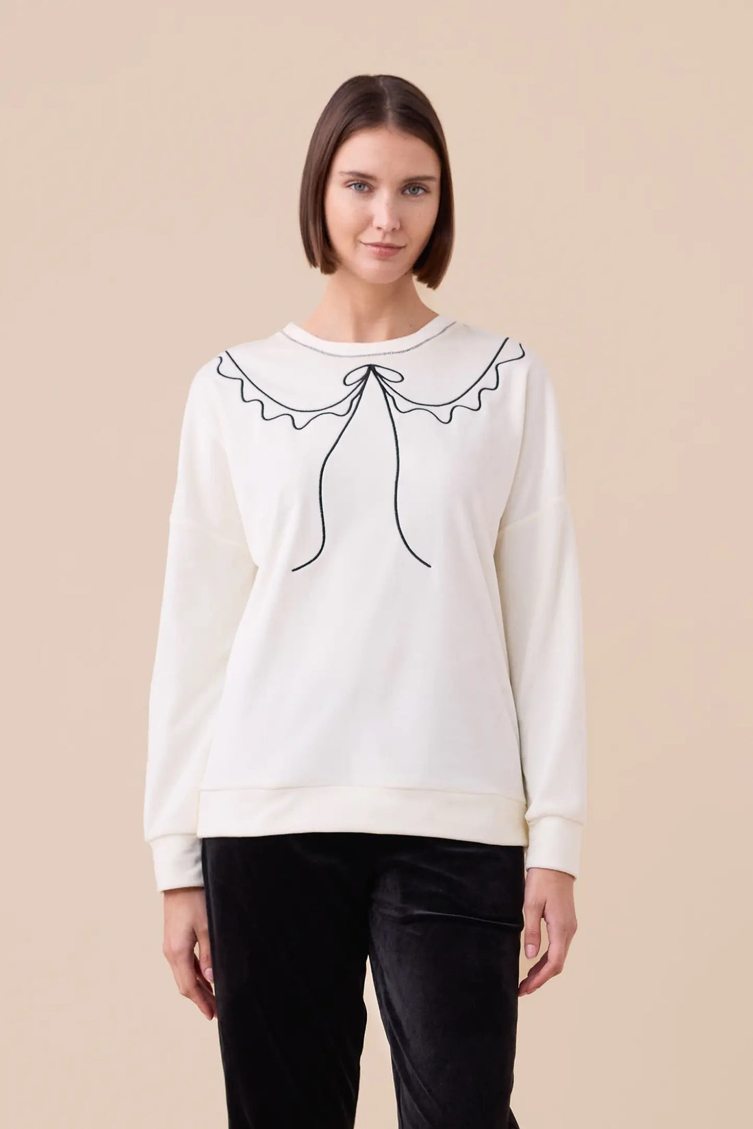 Pigiama donna in ciniglia felpata - soft touch con top girocollo e fiocco ricamato. Pantaloni...