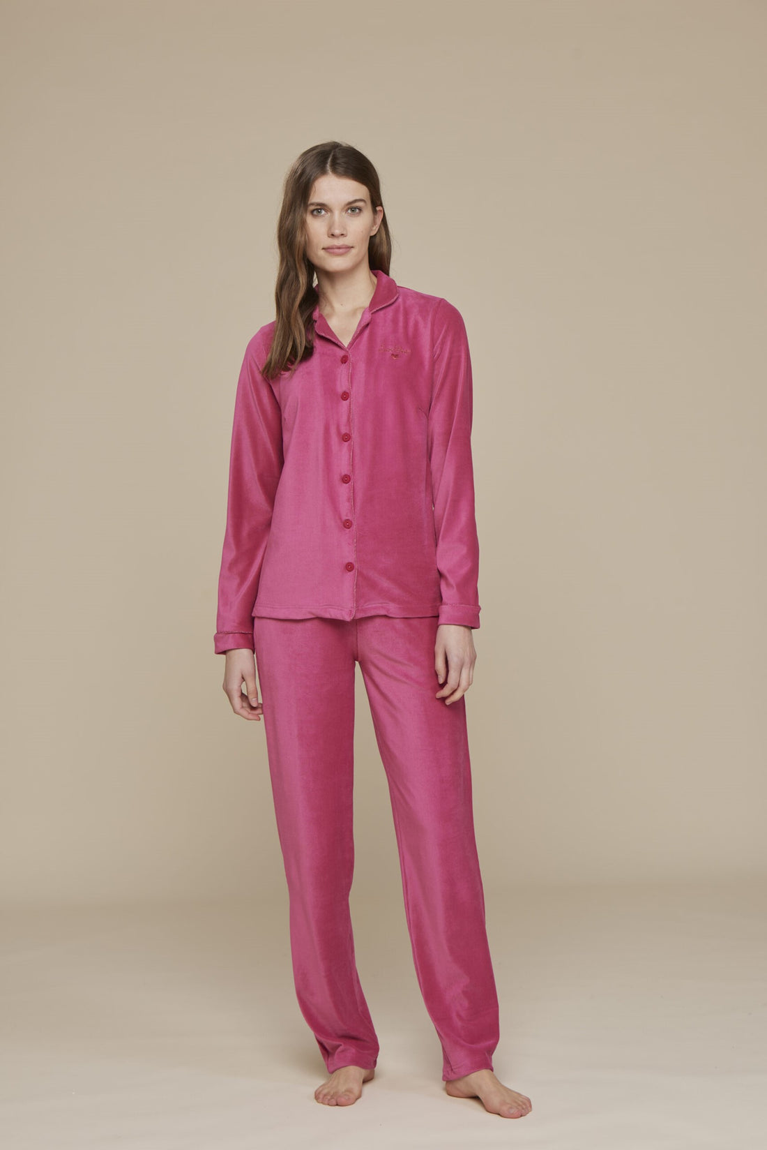 Pigiama donna florencia in morbida ciniglia a taglio uomo con abbottonatura centrale ed elegante profilo...