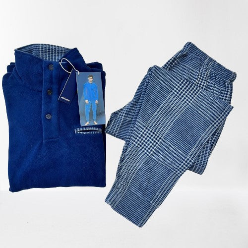 Pigiama uomo micropile litio pantaloni blu con stampa principe di galles con polsino e top...