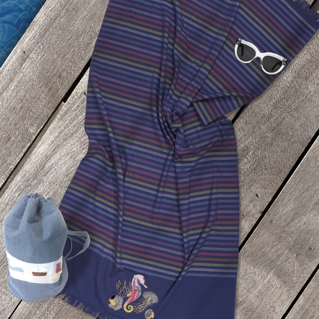 Telo mare in 100% microspugna 350 gr/m. Misura: 90×160 cm con disegno e bordo con...