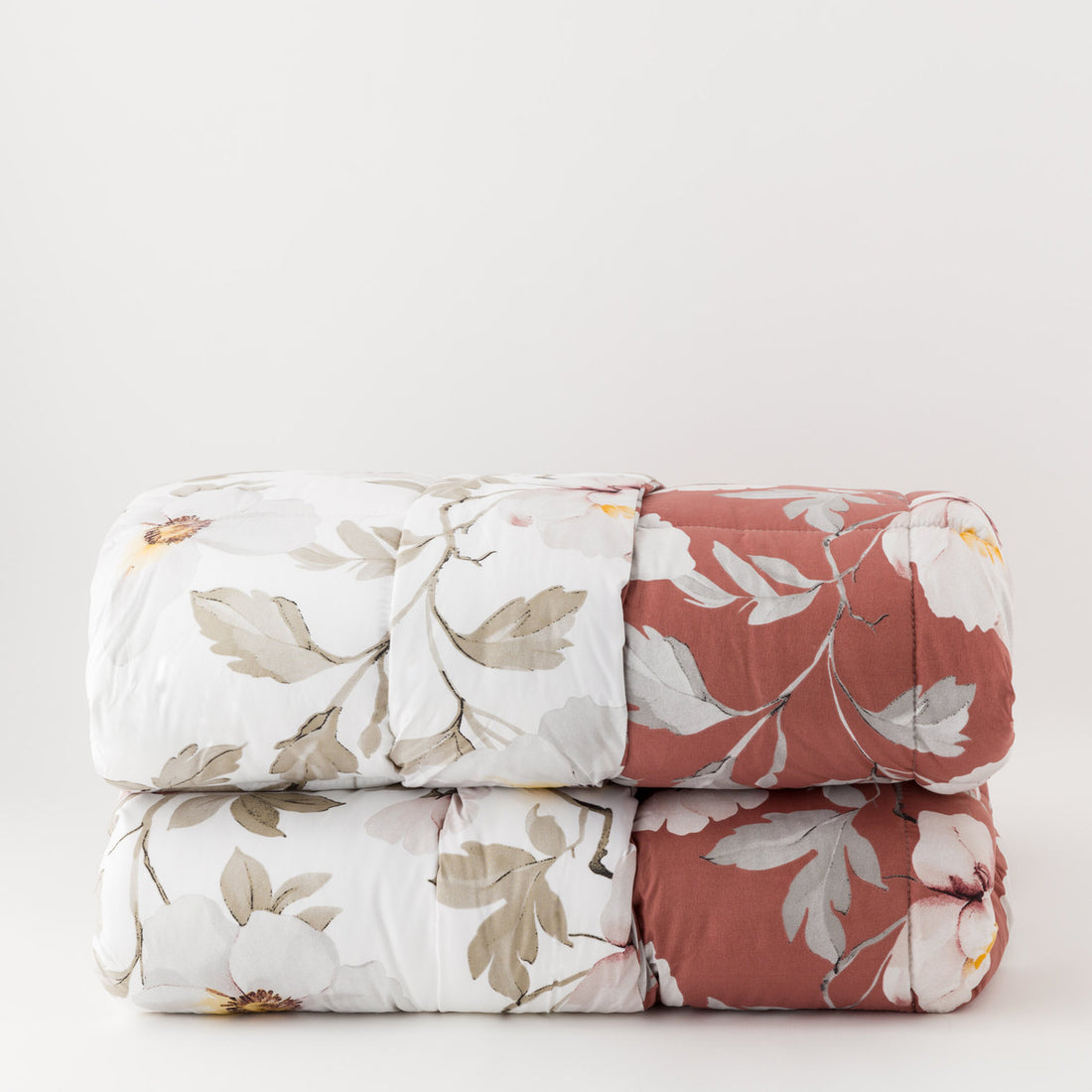 Trapunta Microfibra Peonia con Stampa Digitale Piazzata Trapuntatura a capo con quadri, 1 cornice ed...