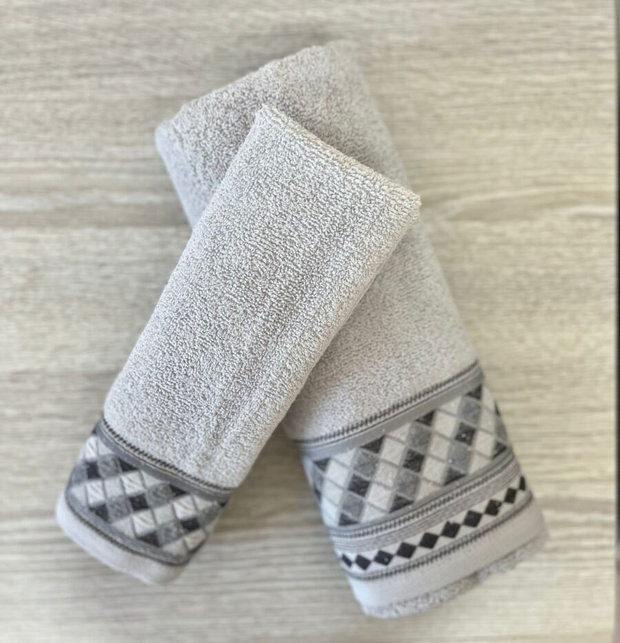 Set Asciugamani 1+1 in spugna PIERRE CARDIN morbidissima la spugna rende la tua stanza da bagno un ambiente confortevole e di gran gusto. La spugna inoltre è prodotta in grammatura ideale per un’asciugatura perfetta. Particolarità con ricamo realizzato a mano sul bordo.