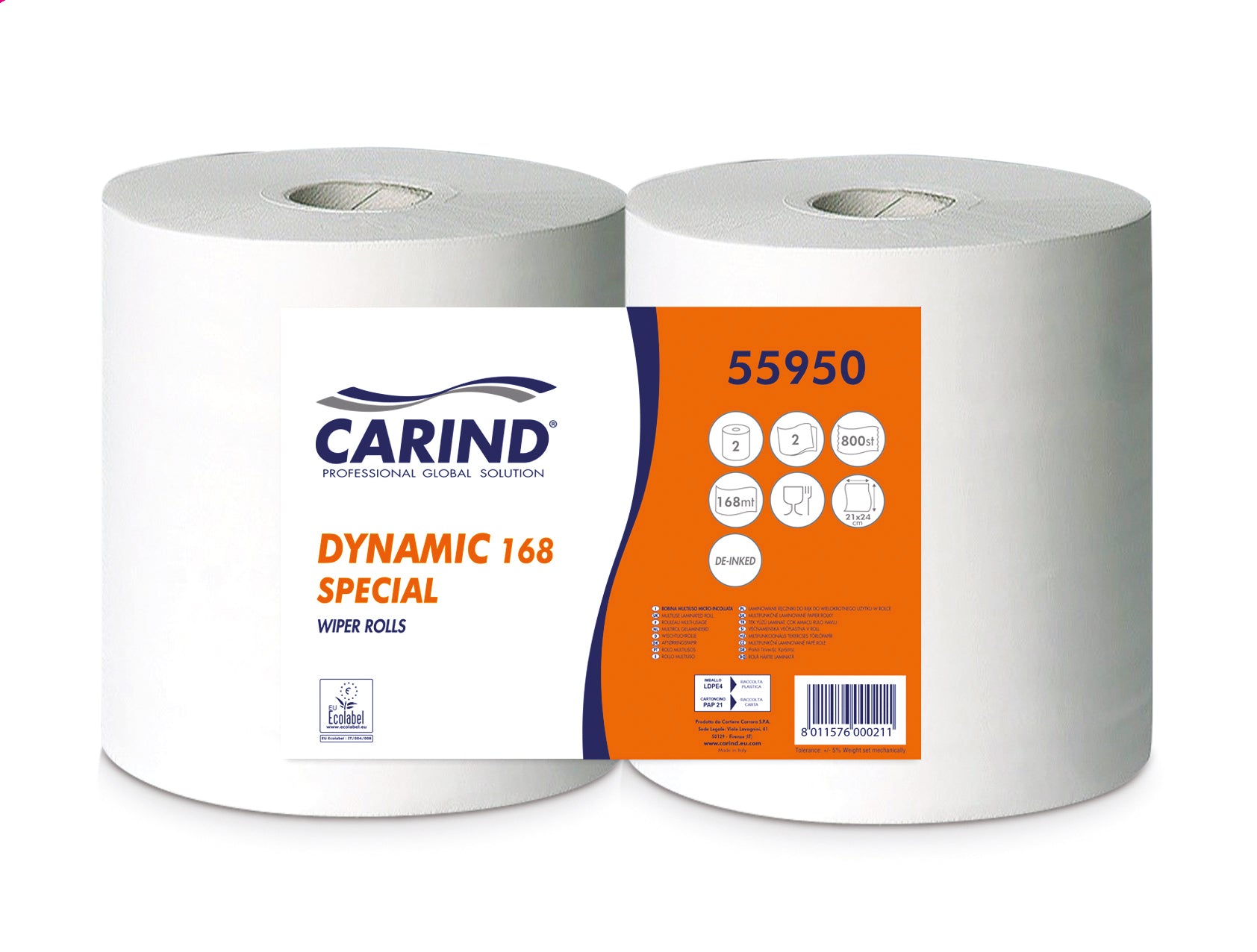 Carta bobina rotoloni pura cellulosa tipo 1600 strappi da 2 veli 3,2 kg conf. 2 pezzi - art. 55950 - Carind