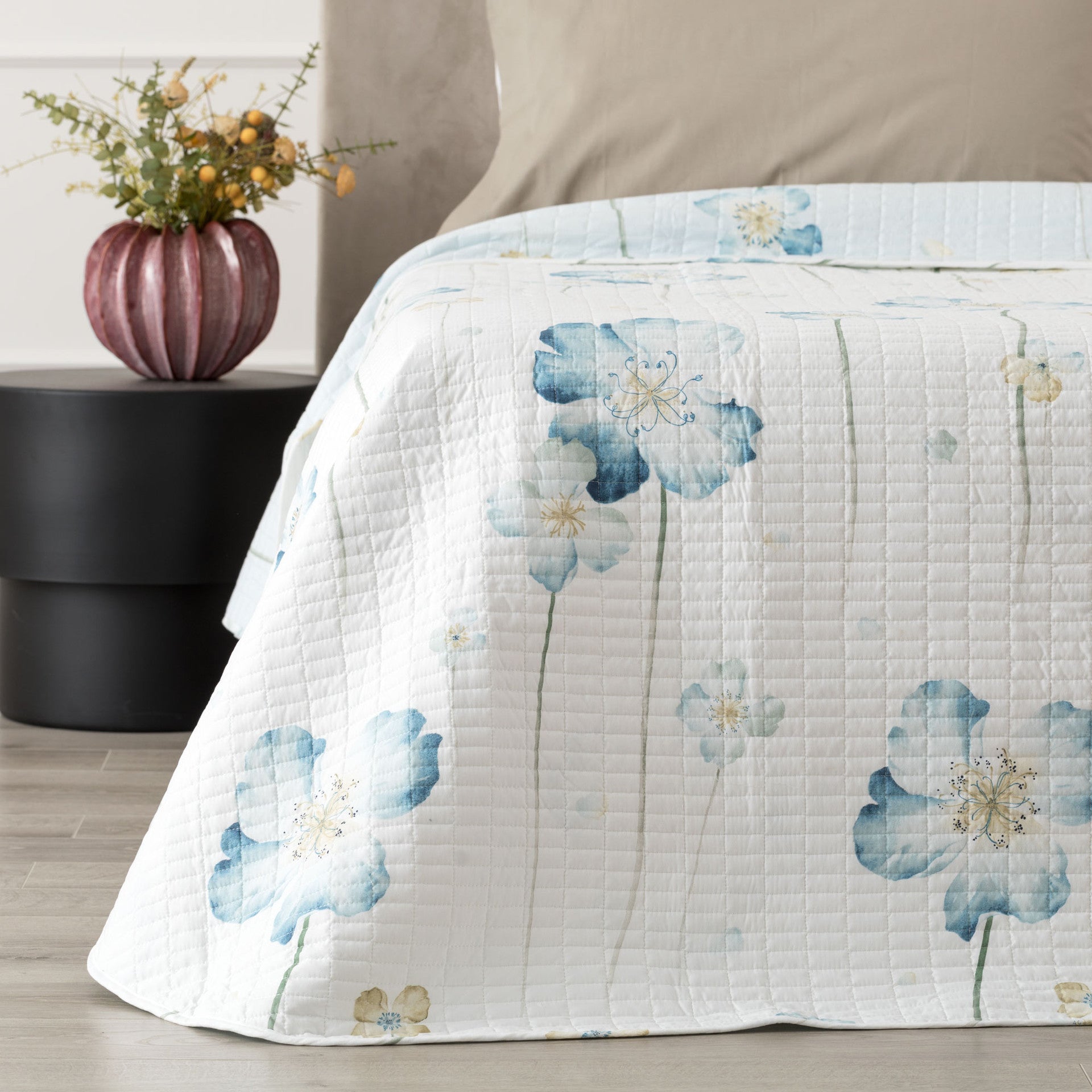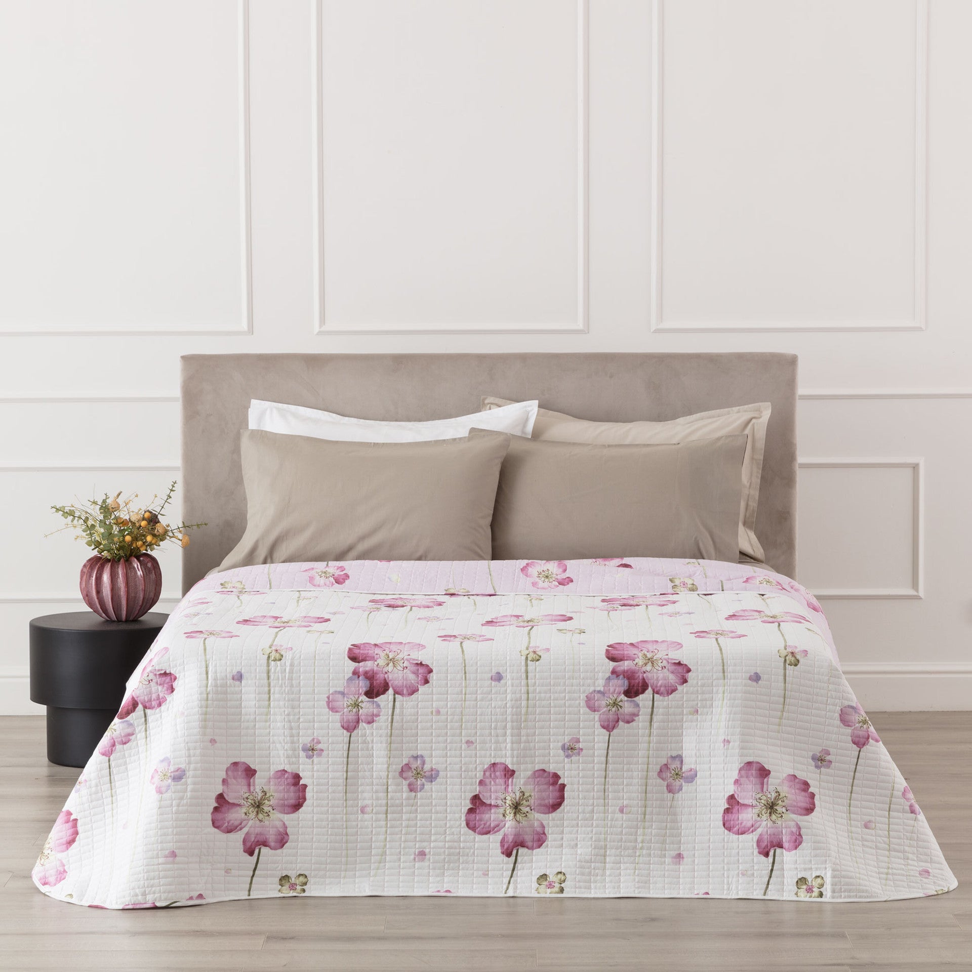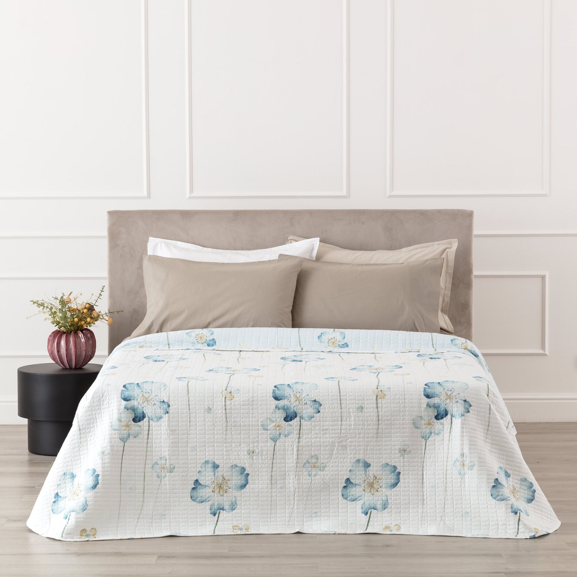 Il Trapuntino Double Ayla è la soluzione perfetta per completare la camera da letto con stile e versatilità. La stessa romantica fantasia floreale del completo letto Ayla si declina in una versione double face: bianco con fiori tortora e retro tortora, bianco con fiori rosa e retro rosa, bianco con fiori acquamarina e retro acquamarina. Un copriletto trapuntato elegante che permette di cambiare look alla stanza con un semplice gesto. Realizzato con esterno e imbottitura in poliestere da 120 gsm, il quilt double Ayla è leggero, pratico e ideale per la mezza stagione. La dimensione 260x260 cm garantisce una vestibilità ampia e armoniosa sul letto matrimoniale, mentre la trapuntatura a lingottino cm 1,5x3,5 valorizza il design e assicura una distribuzione uniforme dell’imbottitura.