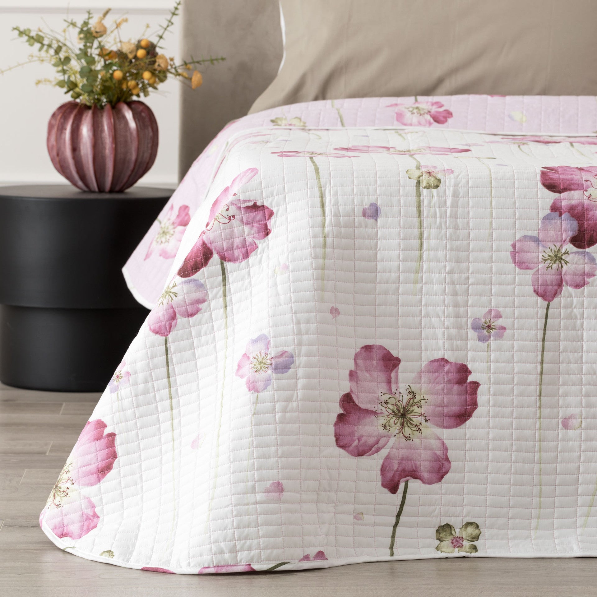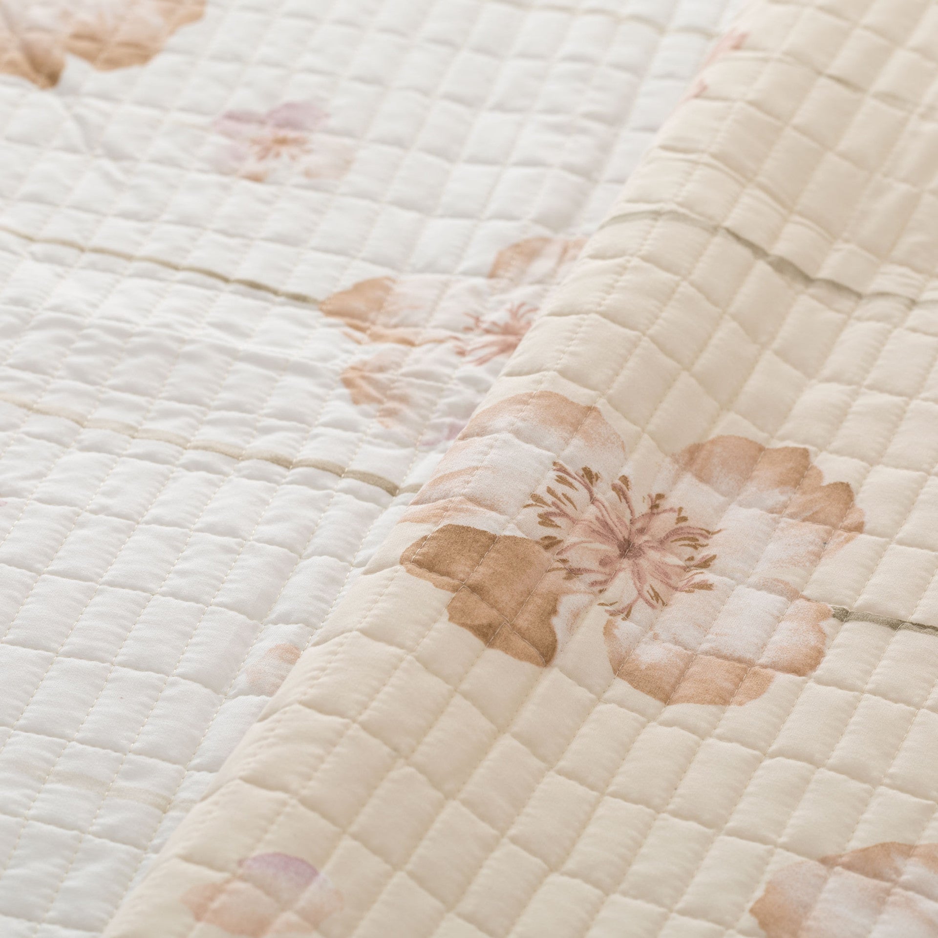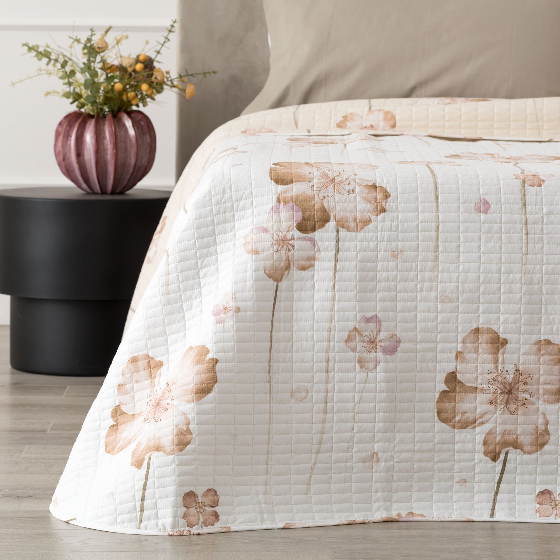 Il Trapuntino Double Ayla è la soluzione perfetta per completare la camera da letto con stile e versatilità. La stessa romantica fantasia floreale del completo letto Ayla si declina in una versione double face: bianco con fiori tortora e retro tortora, bianco con fiori rosa e retro rosa, bianco con fiori acquamarina e retro acquamarina. Un copriletto trapuntato elegante che permette di cambiare look alla stanza con un semplice gesto. Realizzato con esterno e imbottitura in poliestere da 120 gsm, il quilt double Ayla è leggero, pratico e ideale per la mezza stagione. La dimensione 260x260 cm garantisce una vestibilità ampia e armoniosa sul letto matrimoniale, mentre la trapuntatura a lingottino cm 1,5x3,5 valorizza il design e assicura una distribuzione uniforme dell’imbottitura.