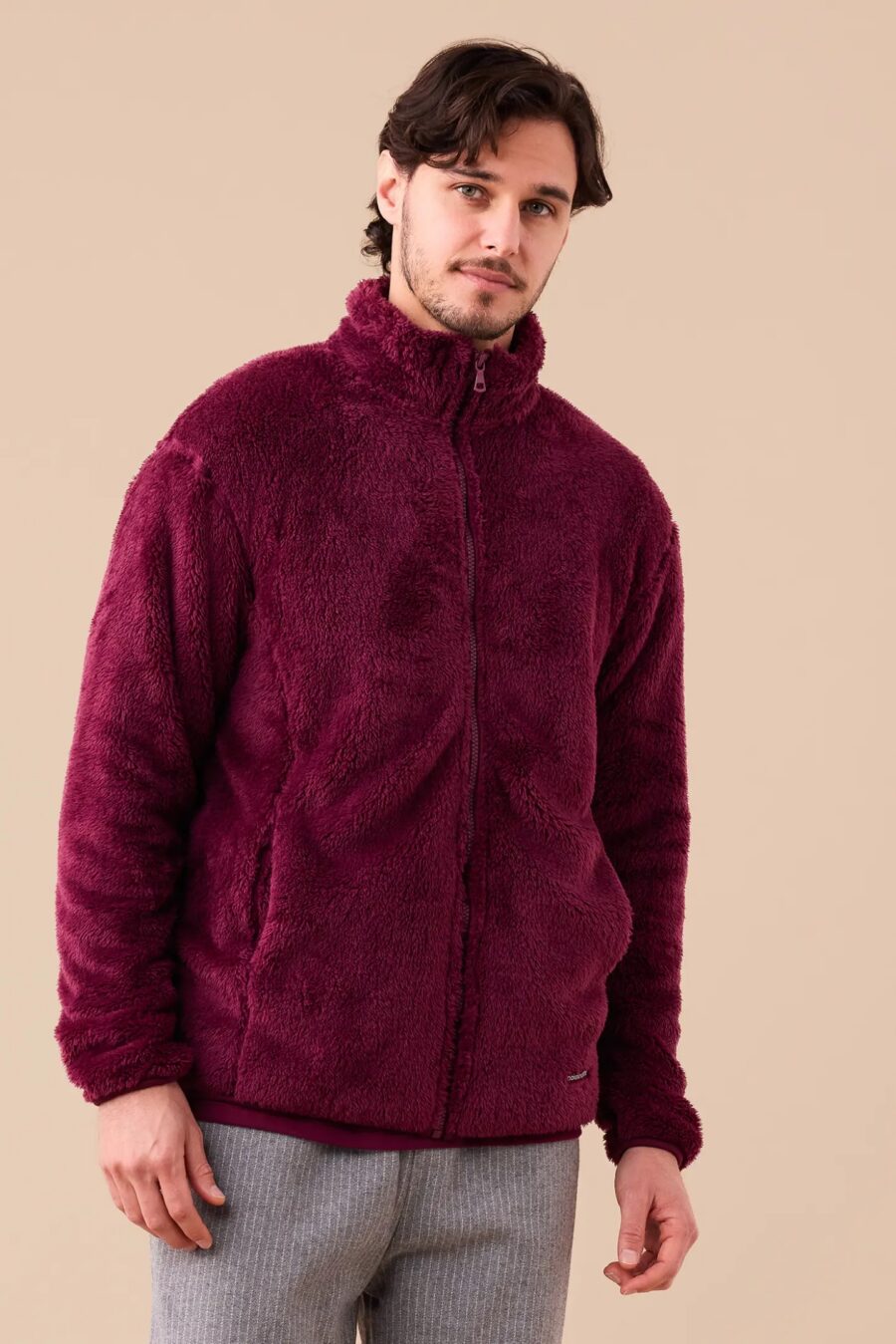 Giacca in eco-pelliccia tinta unita con zip e tasche.