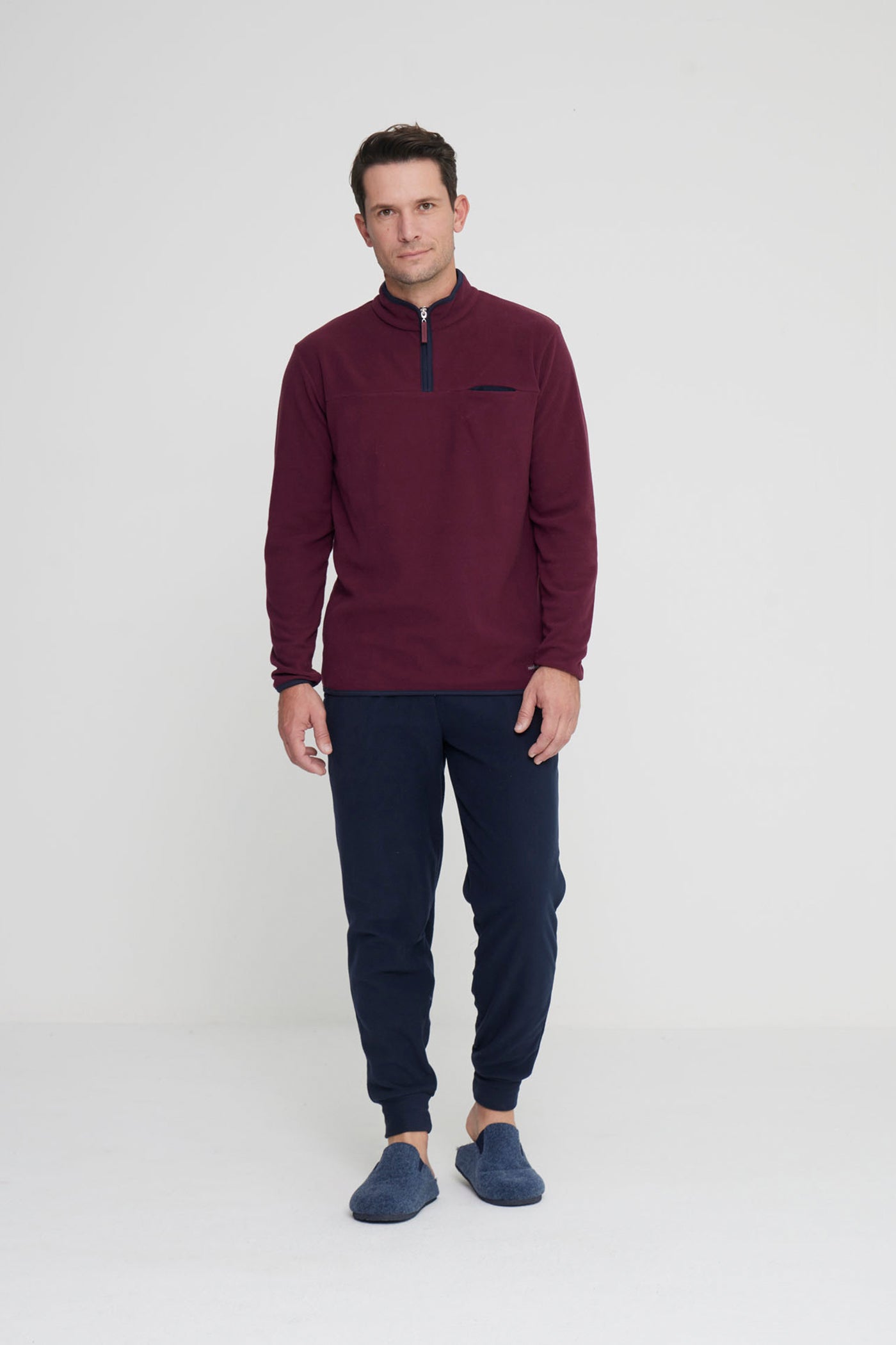 Pigiama uomo Iin micropile litio soft touch pantaloni in tinta unita con polsino alle caviglie con tasche laterali, top in tinta unita con taschino lato cuore, con polsini e collo con zip - art. FC002961 - Noidinotte