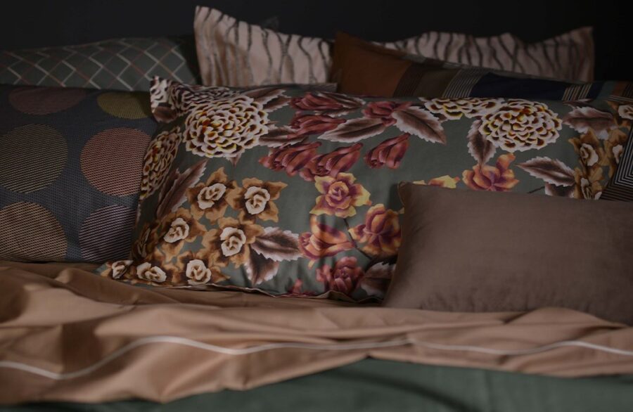 Trapunta in raso Tessuto fronte raso di cotone 280 fili – stampa digitale, retro 100% cotone tinta unita, imbottitura 100% poliestere 300 gm/m2 siliconata, trapuntatura piazzata a jumping, angoli a trapezio, chiusura ribattuta